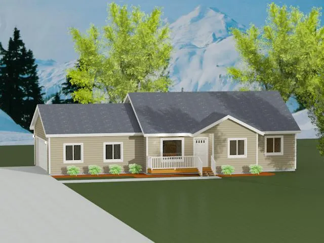 Foundation, framing, roofing, windows, insulation, rough & finish plumbing, HVAC, cabinets, basic flooring & lighting. Driveway, paint, appliances, and landscaping are separate.