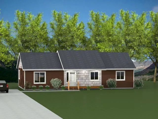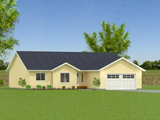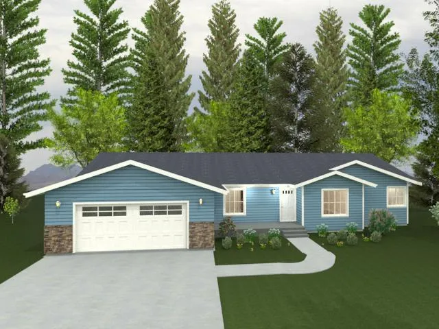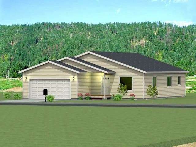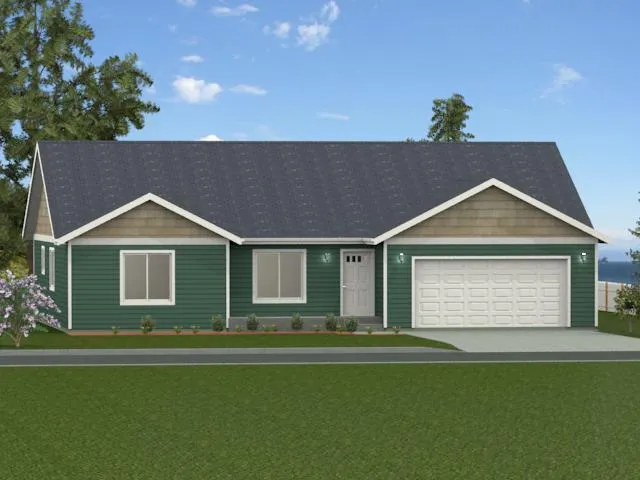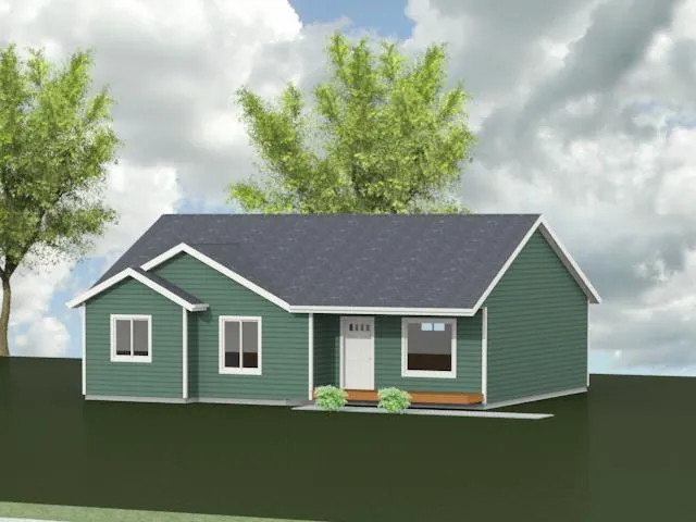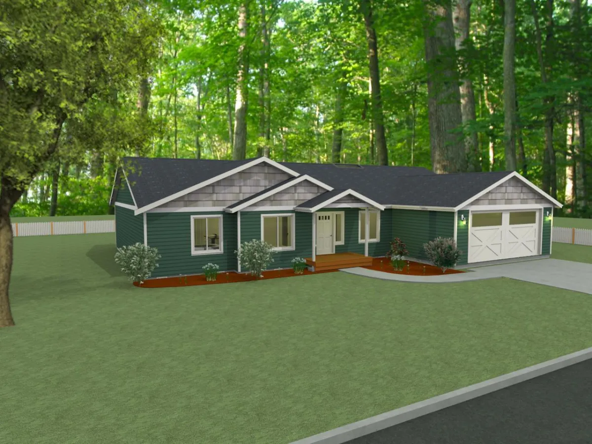 Foundation, framing, roofing, windows, insulation, rough & finish plumbing, HVAC, cabinets, basic flooring & lighting. Driveway, paint, appliances, and landscaping are separate.